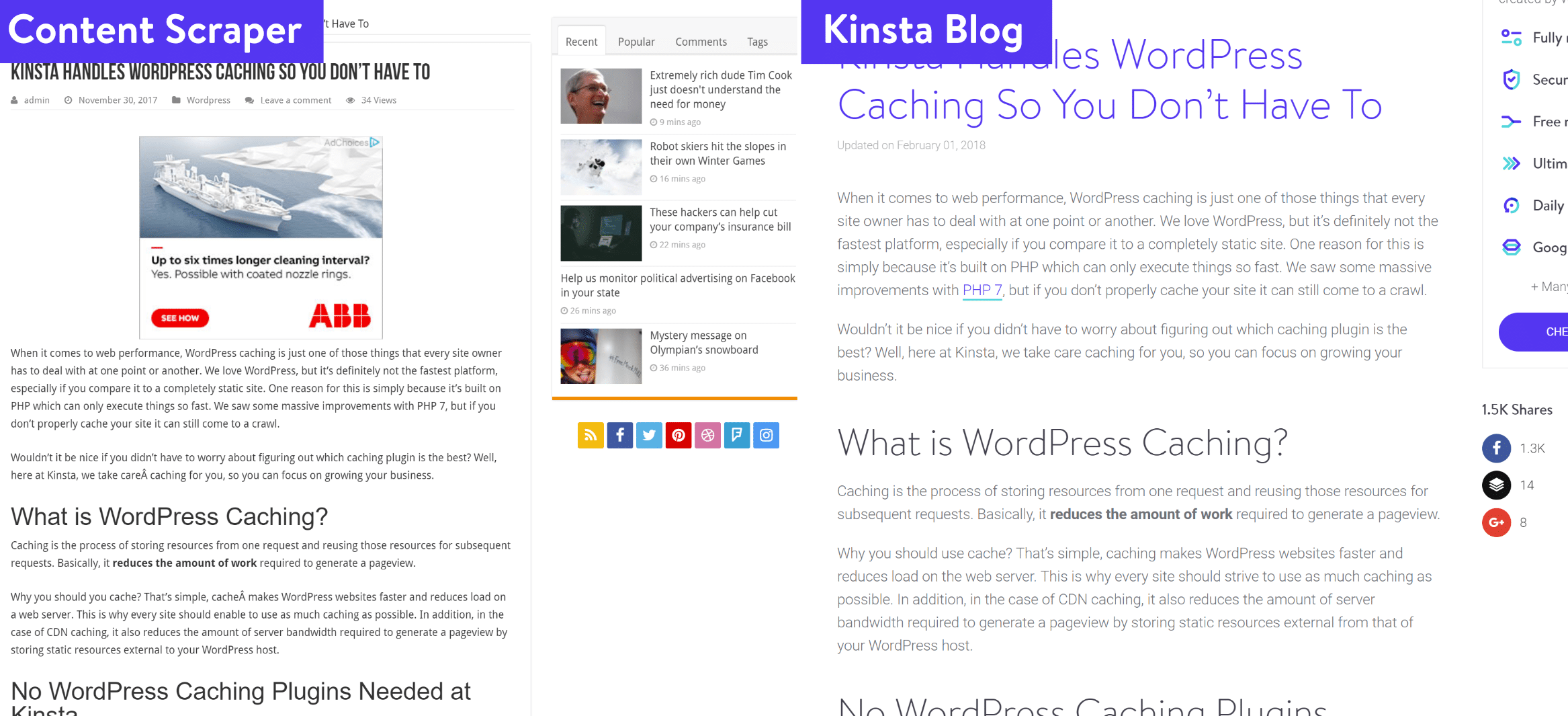 There are a lot of third-party WordPress plugins now that allow you to automatically grab third-party RSS feeds. And while the developers have good intentions, unfortunately, these are sometimes abused and used for content scraping. One of the reasons WordPress is so popular is for ease of use, but sometimes that can also backfire.