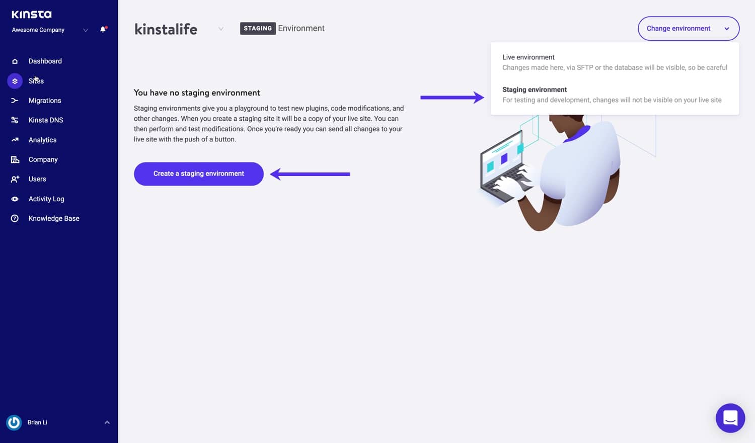 To be honest, I don’t know what I would do without staging environments. When it comes to troubleshooting issues like these, they come in super handy. Thankfully, Kinsta has easy-to-use staging environments. So I hopped into the MyKinsta dashboard and pushed a copy of my production site to staging. If your WordPress host doesn’t offer staging environments, you could also use a plugin like WP Staging, although it’s not as easy.