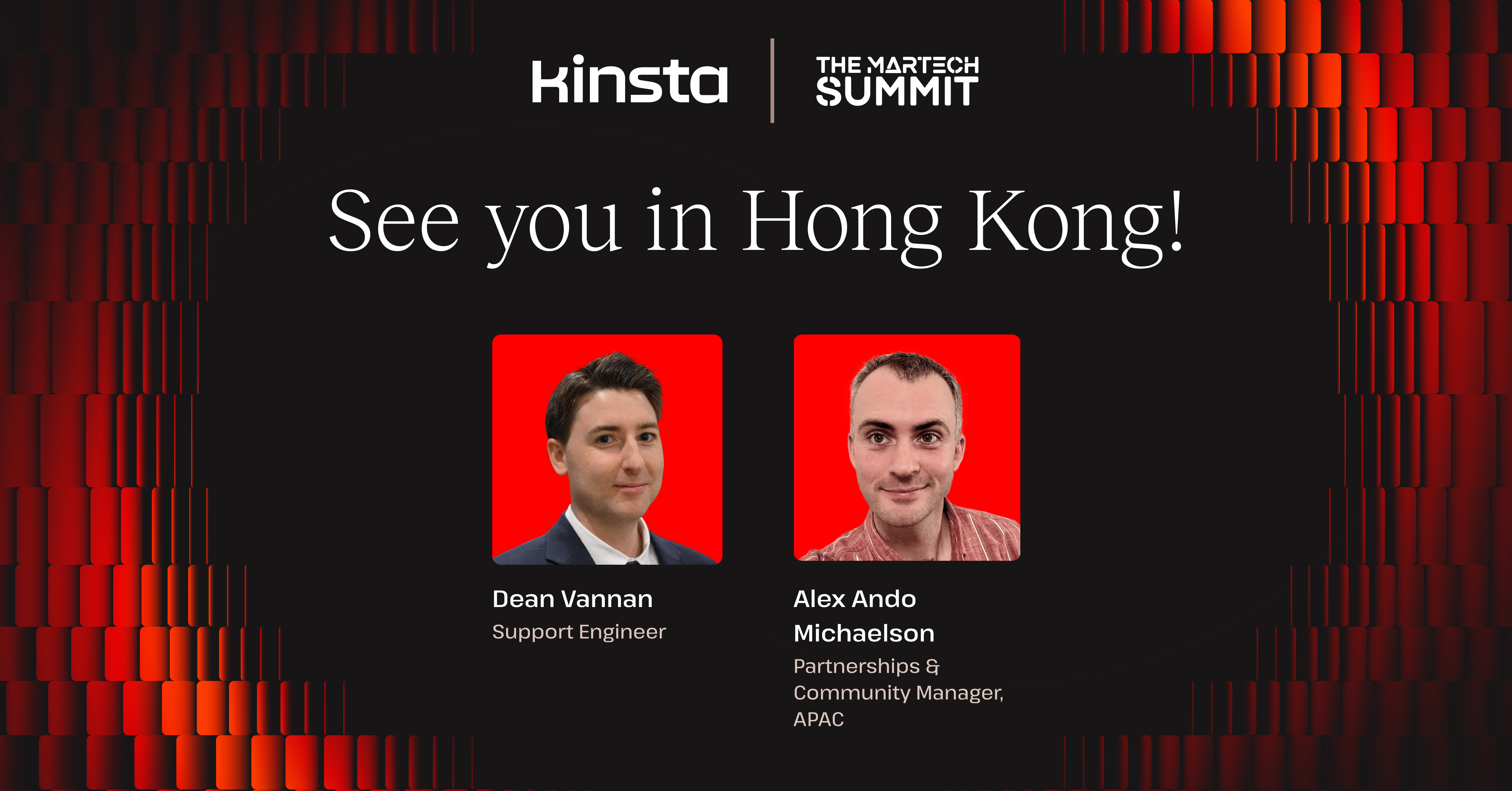 Kinsta is heading to The MarTech Summit in Hong Kong on July 8, and we can’t wait to connect with innovators, decision-makers, and marketing professionals in the heart of Asia’s business and tech hub.