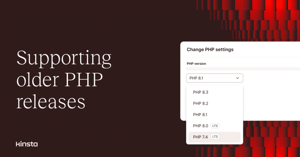 At Kinsta, we’ve always prioritized performance, security, and stability. That’s why, until now, we’ve limited PHP support to officially supported versions like PHP 8.1, 8.2, and 8.3. This approach ensured our customers could benefit from the latest advancements while minimizing risks associated with outdated versions.