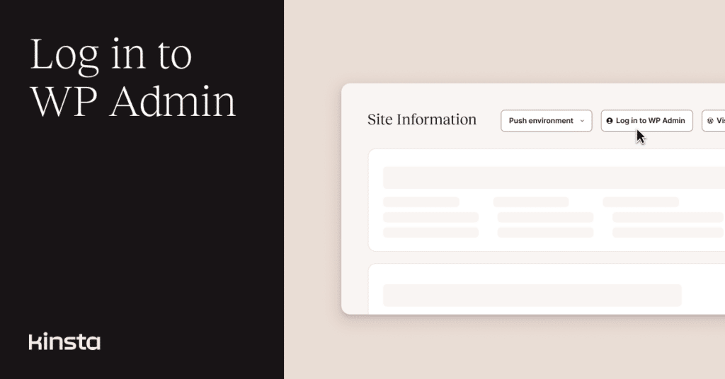 The Log in to WP Admin button sends you directly into the WordPress administrative interface by matching the email address you use in MyKinsta with an email address among the WordPress user accounts.