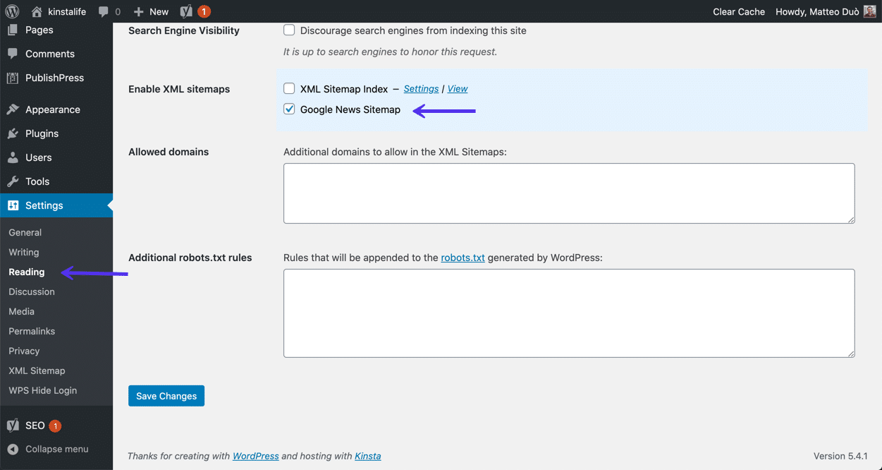 Wenn du es installiert hast, musst du die Google News Sitemap-Funktion in deinen Einstellungen aktivieren: