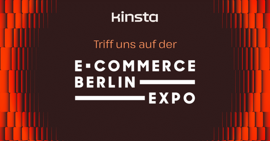 Die Teilnahme ist mit der Online-Anmeldung kostenlos. Wir laden alle Teilnehmer/innen ein, unseren Stand zu besuchen, um mehr über die Hosting-Lösungen von Kinsta zu erfahren und zu besprechen, wie wir ihre E-Commerce-Infrastruktur unterstützen können. Wir sehen uns in Berlin!