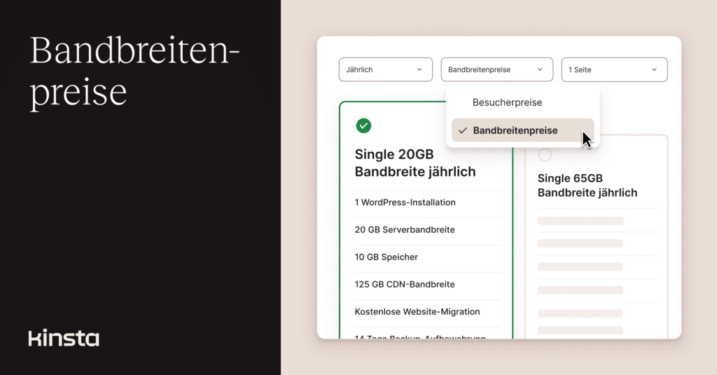 Kinsta’s WordPress-Hosting-Kunden können bei der Dimensionierung neuer Hosting-Tarife zwischen den Anforderungen an die Server-Bandbreite und der Besucherzahl wählen.