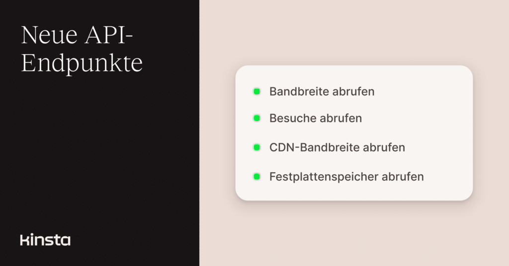 Diese neuen Analyse-Endpunkte geben Entwicklern mehr Einblick in ihre von Kinsta gehosteten Umgebungen direkt aus ihren Automatisierungs- und Berichtsworkflows.