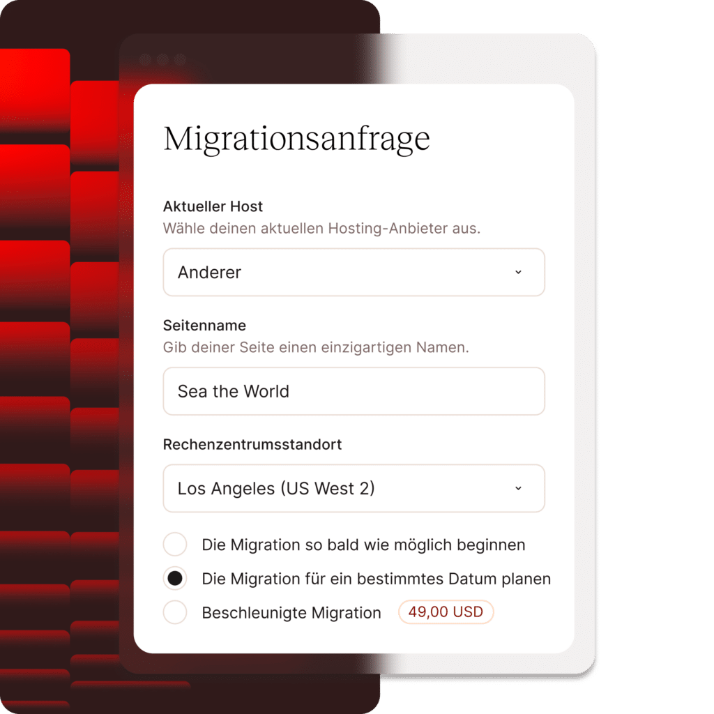 Egal, ob du eine einzelne Website oder ein komplexes Portfolio von Kundenprojekten migrierst, unsere Spezialisten kümmern sich um jedes Detail, um einen reibungslosen Übergang zu gewährleisten, sodass du dich auf die Bereitstellung und das Wachstum konzentrieren kannst.
