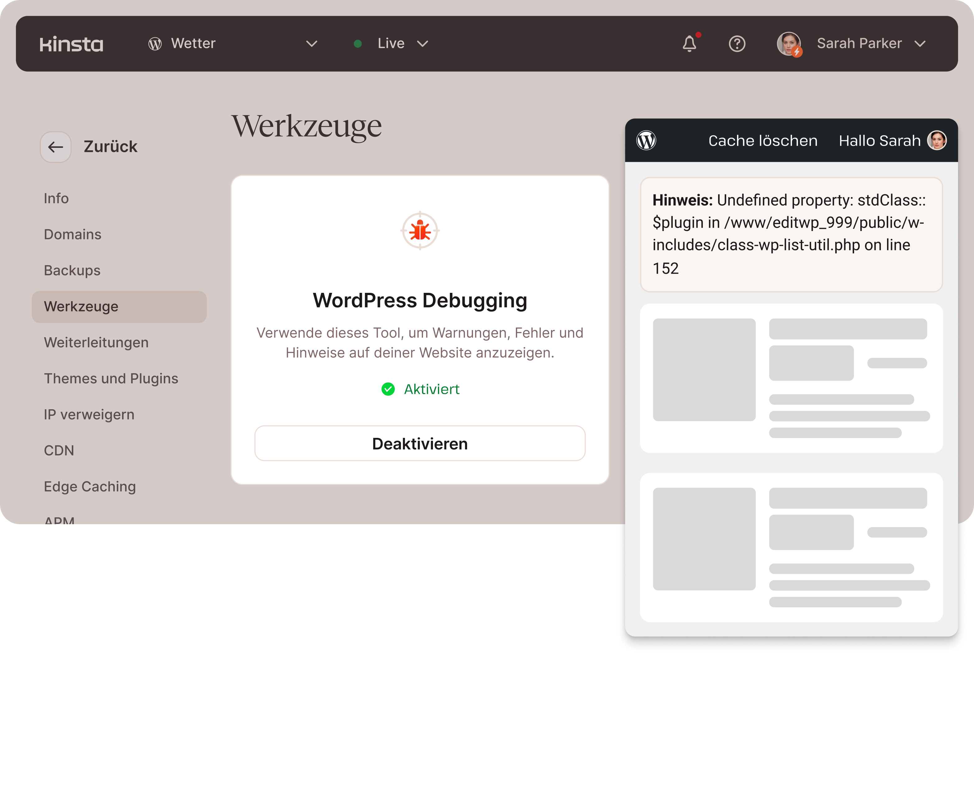- Aktiviere den WordPress-Debugging-Modus mit einem einzigen Klick