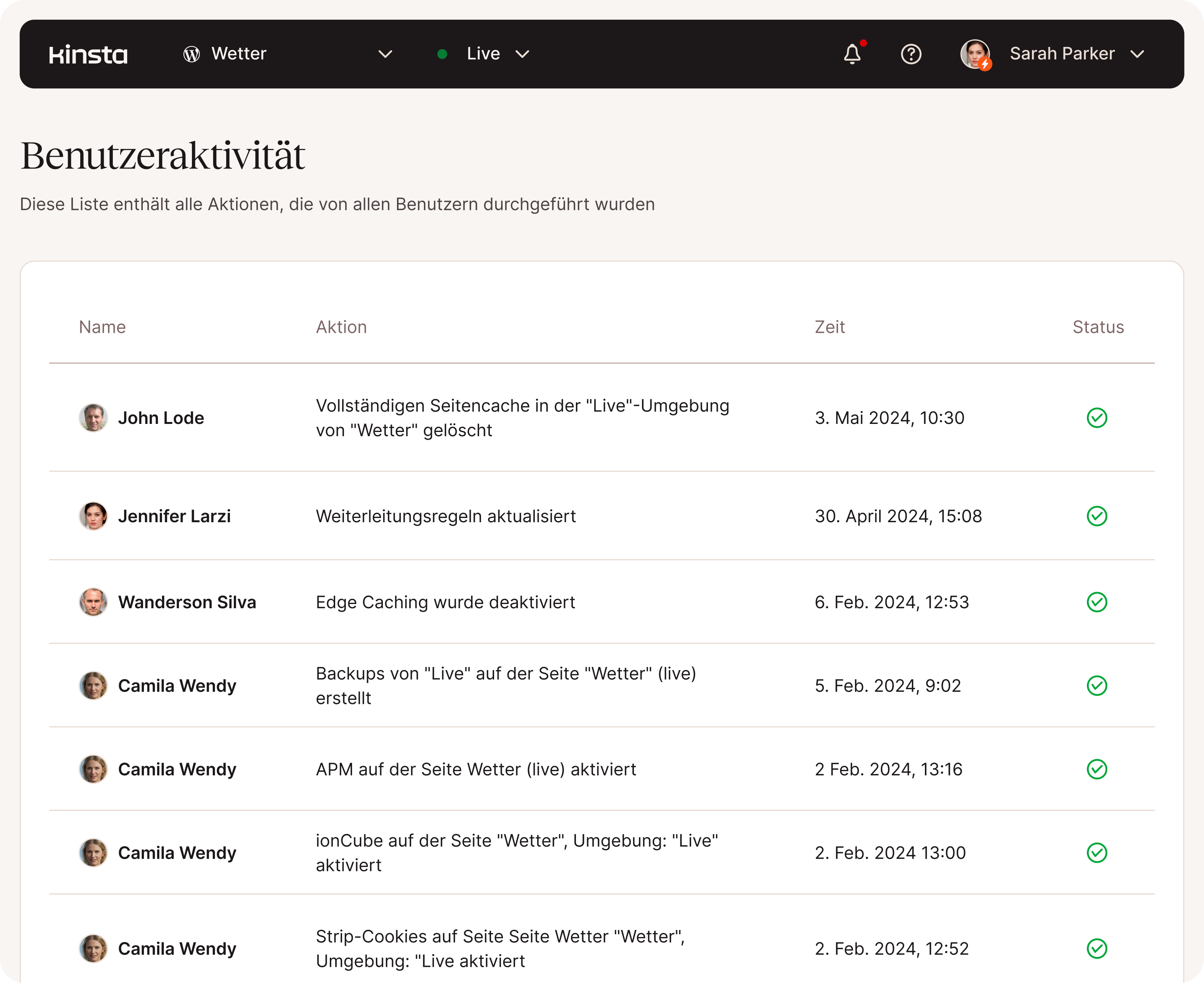 - MyKinsta-Benutzeraktivitätsprotokolle