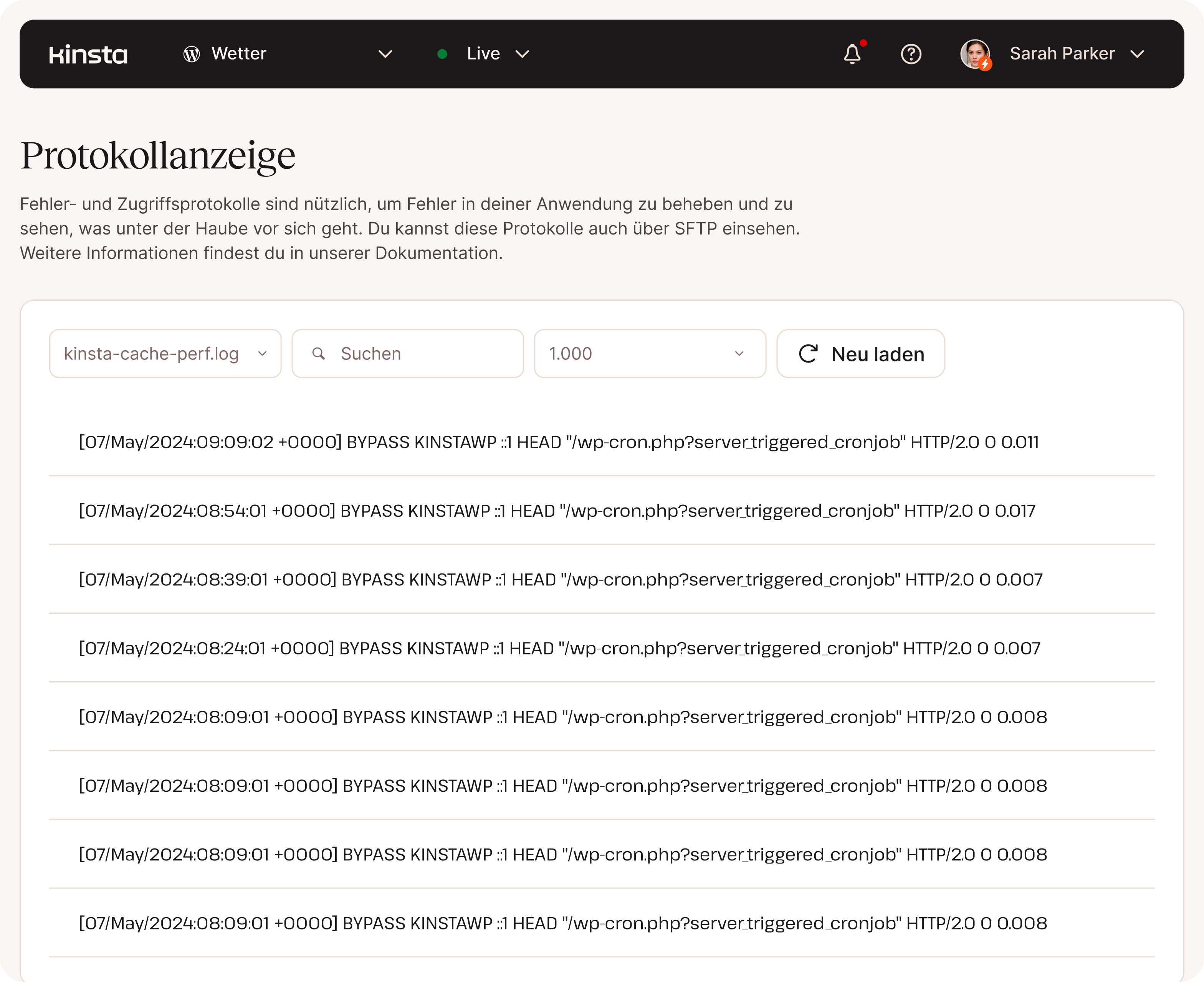 - Durchsuchbare Fehlerprotokolle, Cache-Protokolle und Zugriffsprotokolle