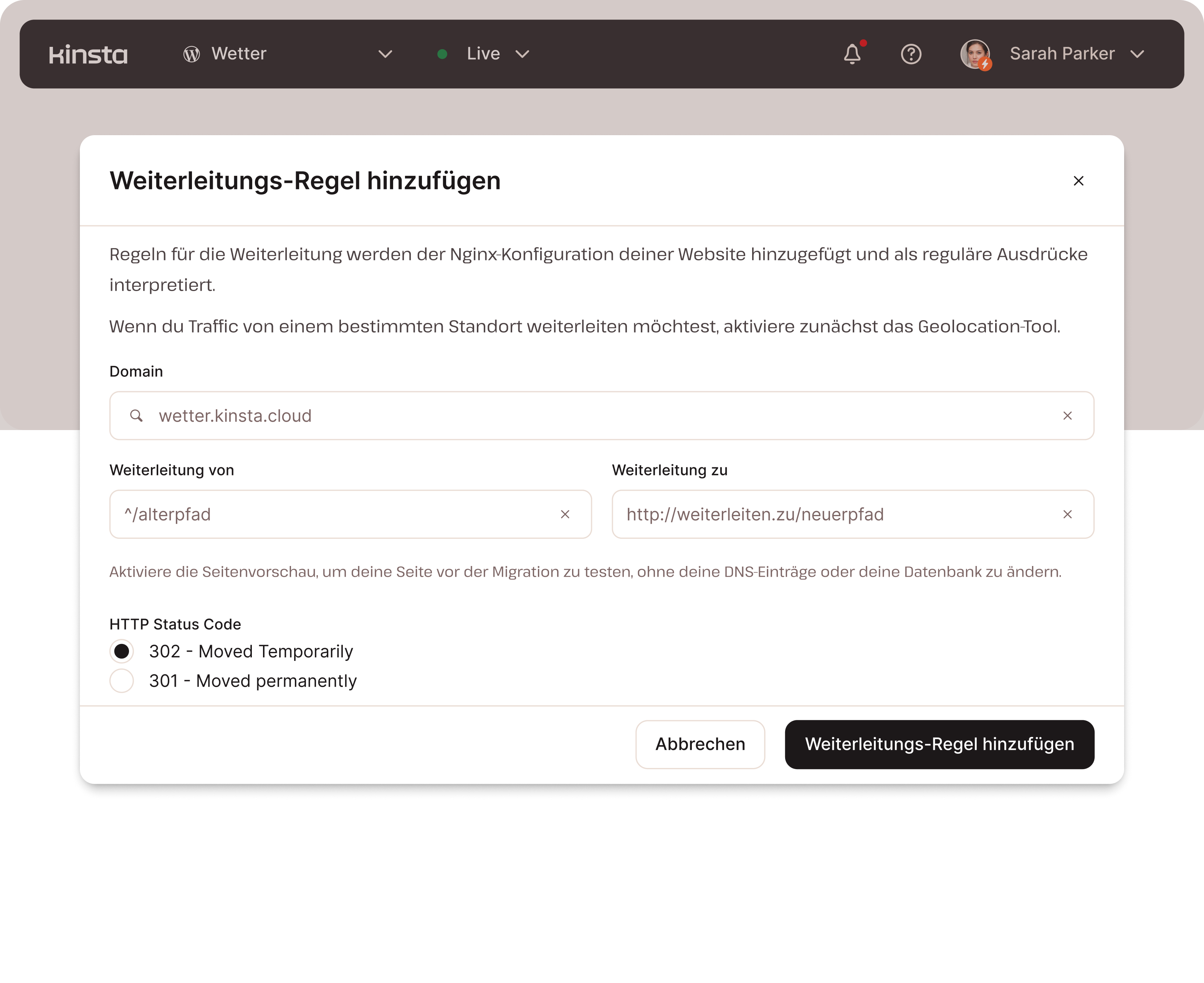 - Server-Weiterleitungen mit Support für reguläre Ausdrücke