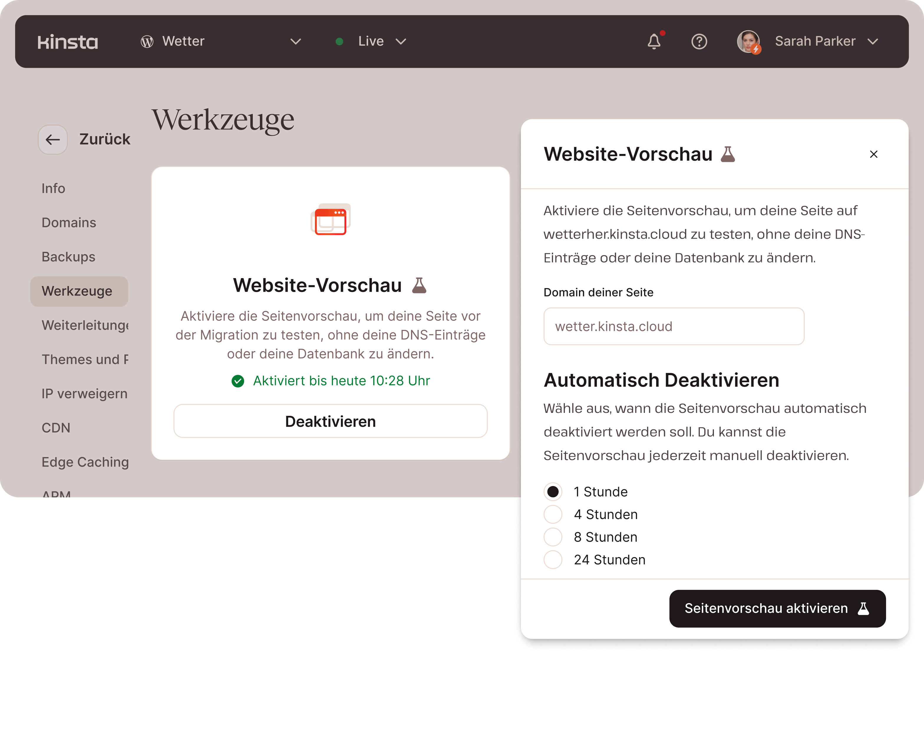 - Seitenvorschau-Tool zum Testen von Seiten ohne DNS-Aktualisierung