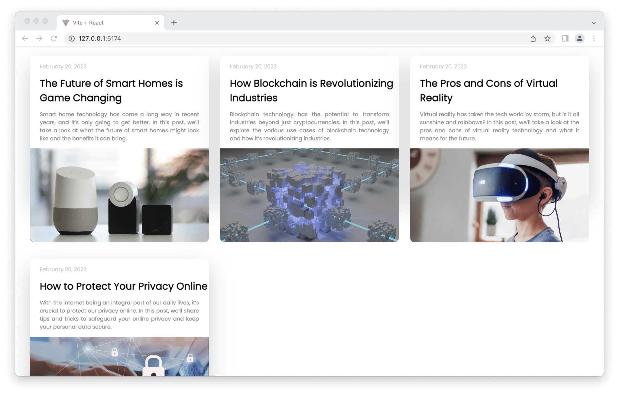 Gem filen, og opdater din browserfane. Nu skulle du gerne kunne se dine blogindlæg gengivet på siden.
