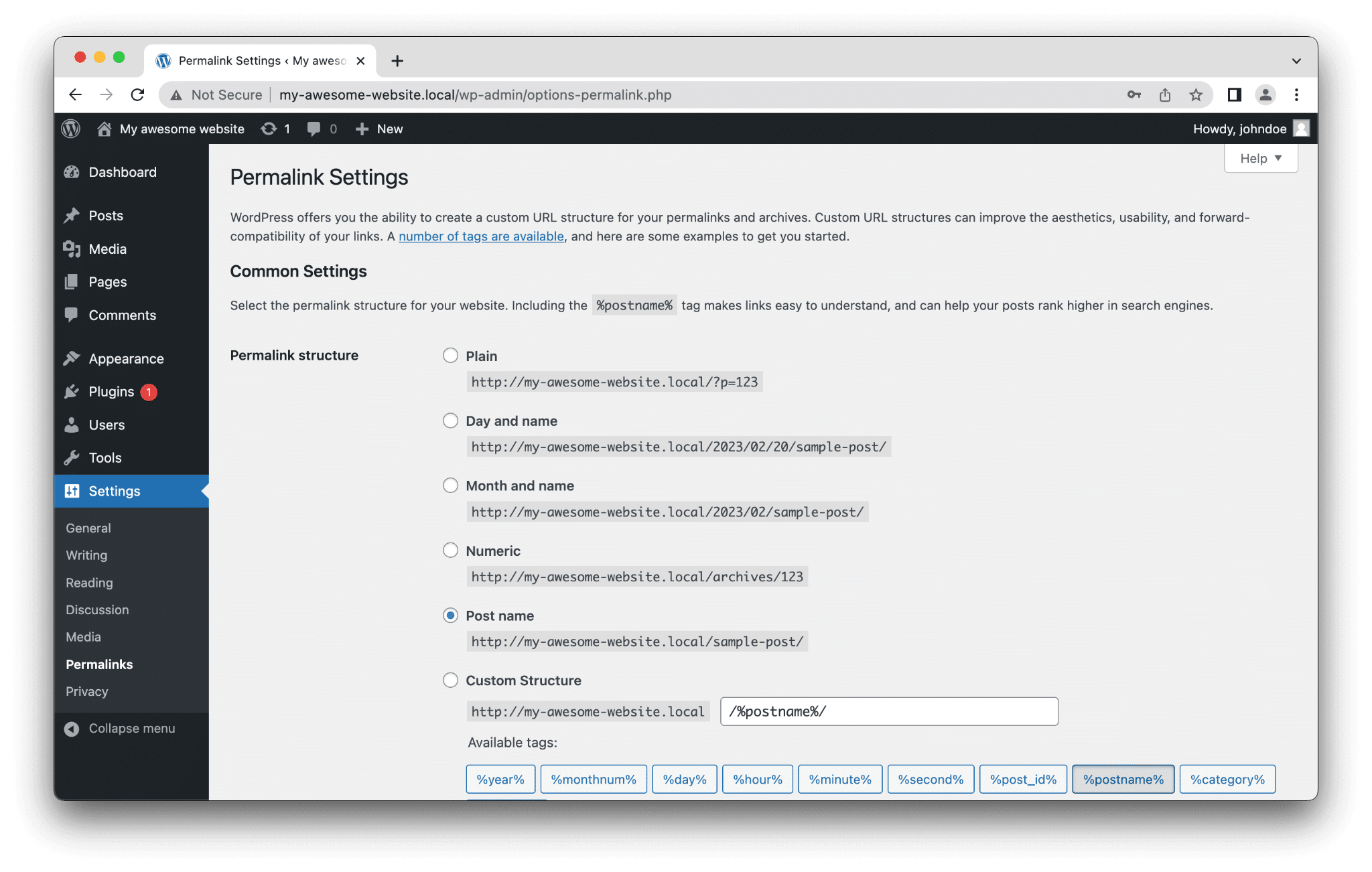 For at aktivere JSON API skal du derefter opdatere permalinks på din hjemmeside.