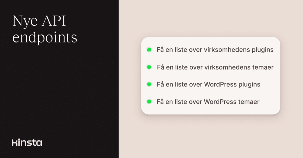 Med disse tilføjelser giver Kinsta API nu klarere synlighed i plugins og temaer på både virksomheds- og webstedsniveau.