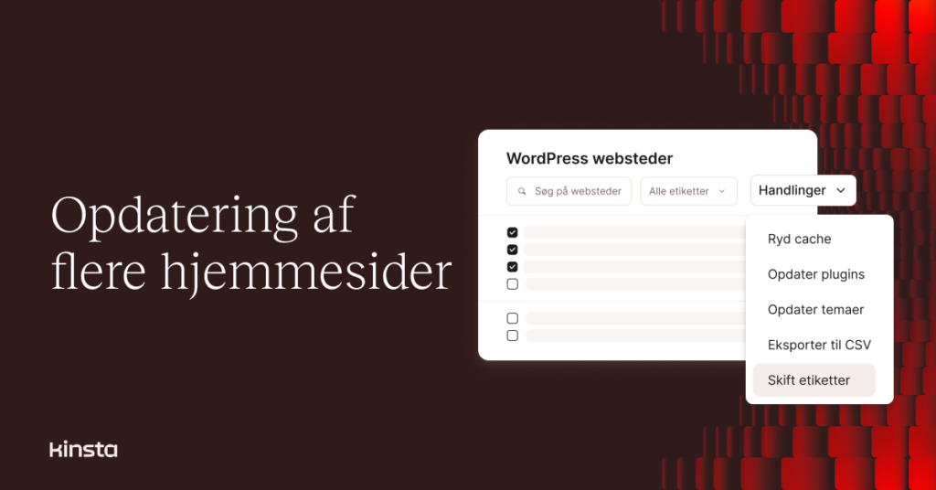 Kinsta har introduceret en ny funktion til massehandlinger i MyKinsta, der gør det lettere for Administreret WordPress Hosting-kunder at udføre almindelige opgaver på tværs af flere webstedsmiljøer samtidigt.