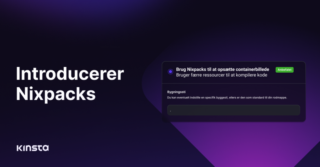 Som en del af vores løbende forpligtelse til at give dig kraftfulde værktøjer og teknologier til at forbedre Applikation Hosting, introducerer vi Nixpacks som en ny mulighed for automatisk at oprette container images til dine applikationer baseret på dit repository.