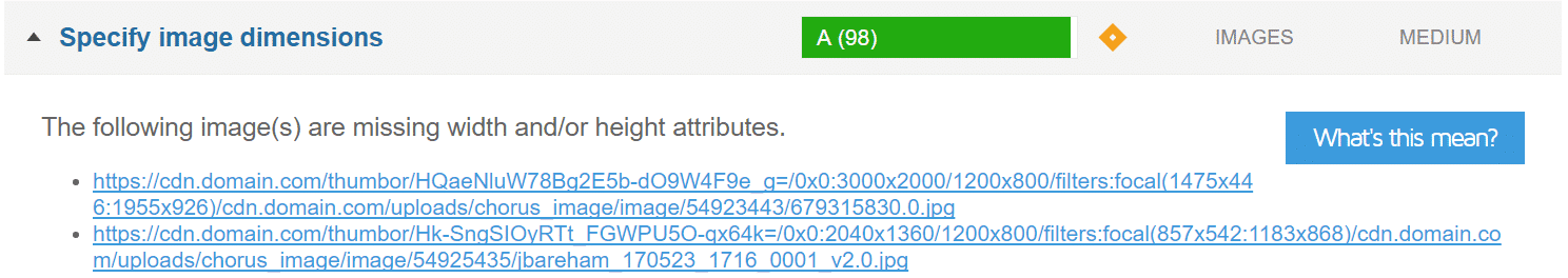 Este es un encabezado HTTP y deberían incluirse en cada respuesta del servidor de origen, tal como se indica al navegador si o no el cliente puede manejar versiones comprimidas de los contenidos. Normalmente, cuando se habilita la compresión gzip, esto también es fijo. Pero asegúrese de comprobar nuestra publicación en profundidad sobre cómo arreglar el Specify a Vary: Accept-Encoding Header. Y de nuevo, no se puede arreglar esto con recursos de terceros.