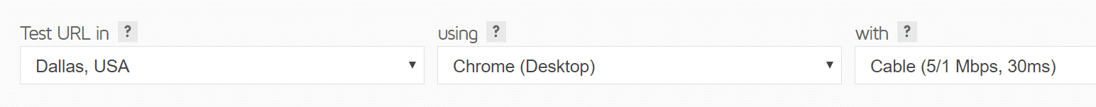 La primera es la posibilidad de elegir la ubicación en la que desea poner a prueba su URL. La ubicación física que usted elija es realmente muy importante ya que se refiere dónde su sitio web está alojado en realidad. Cuanto menor es la latencia, sus tiempos de carga serán más rápidos. Ubicaciones disponibles actualmente incluyen: