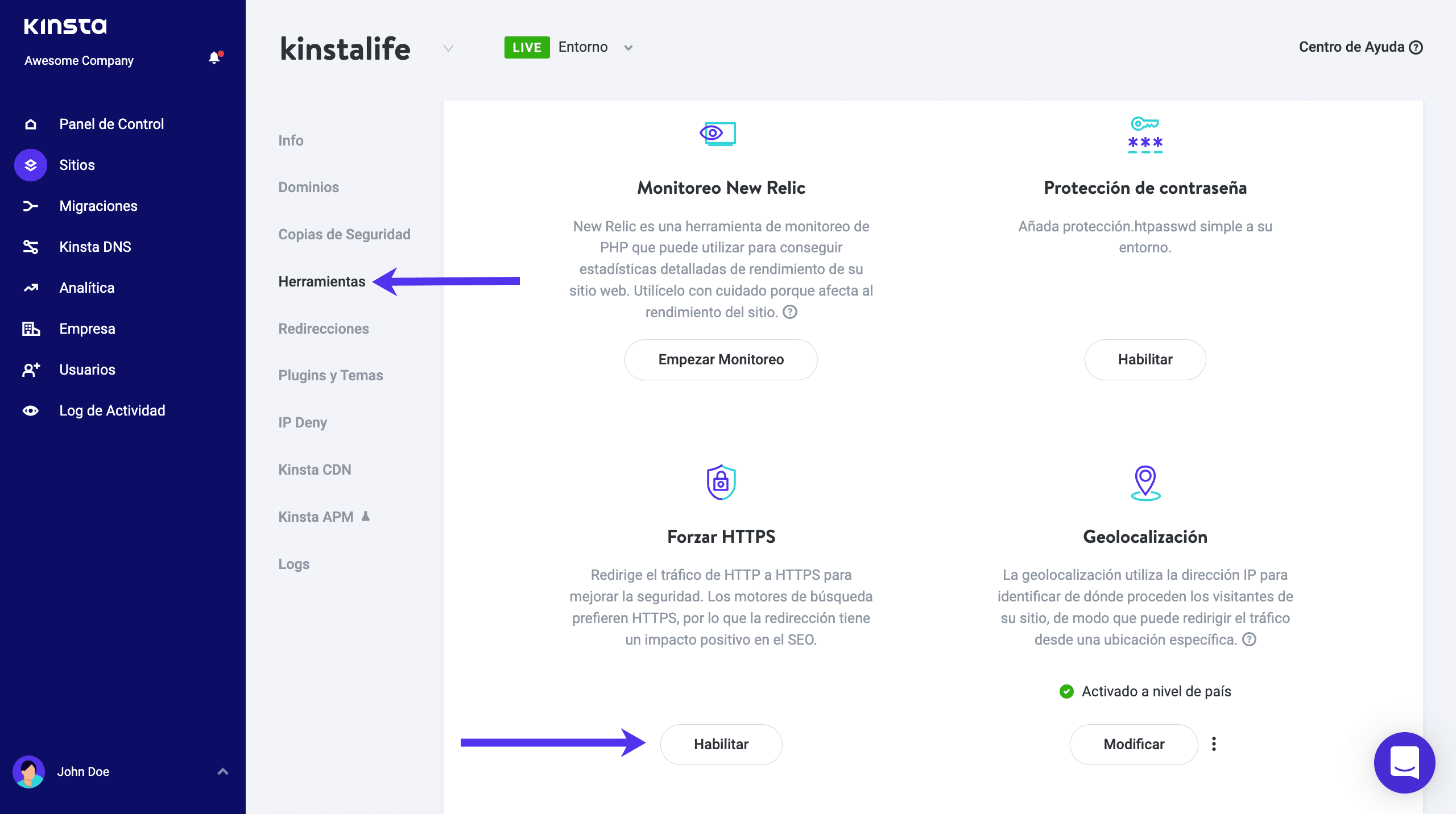 En el pasado, los clientes de Kinsta tenían que ponerse en contacto con nuestro equipo de soporte o utilizar un plugin para redirigir su tráfico HTTP a HTTPS. ¡Ya no es necesario! Ahora tenemos una Herramienta de Forzar HTTPS. Esta nos permite redirigir el tráfico con tan sólo dar unos clics en el dashboard de MyKinsta.