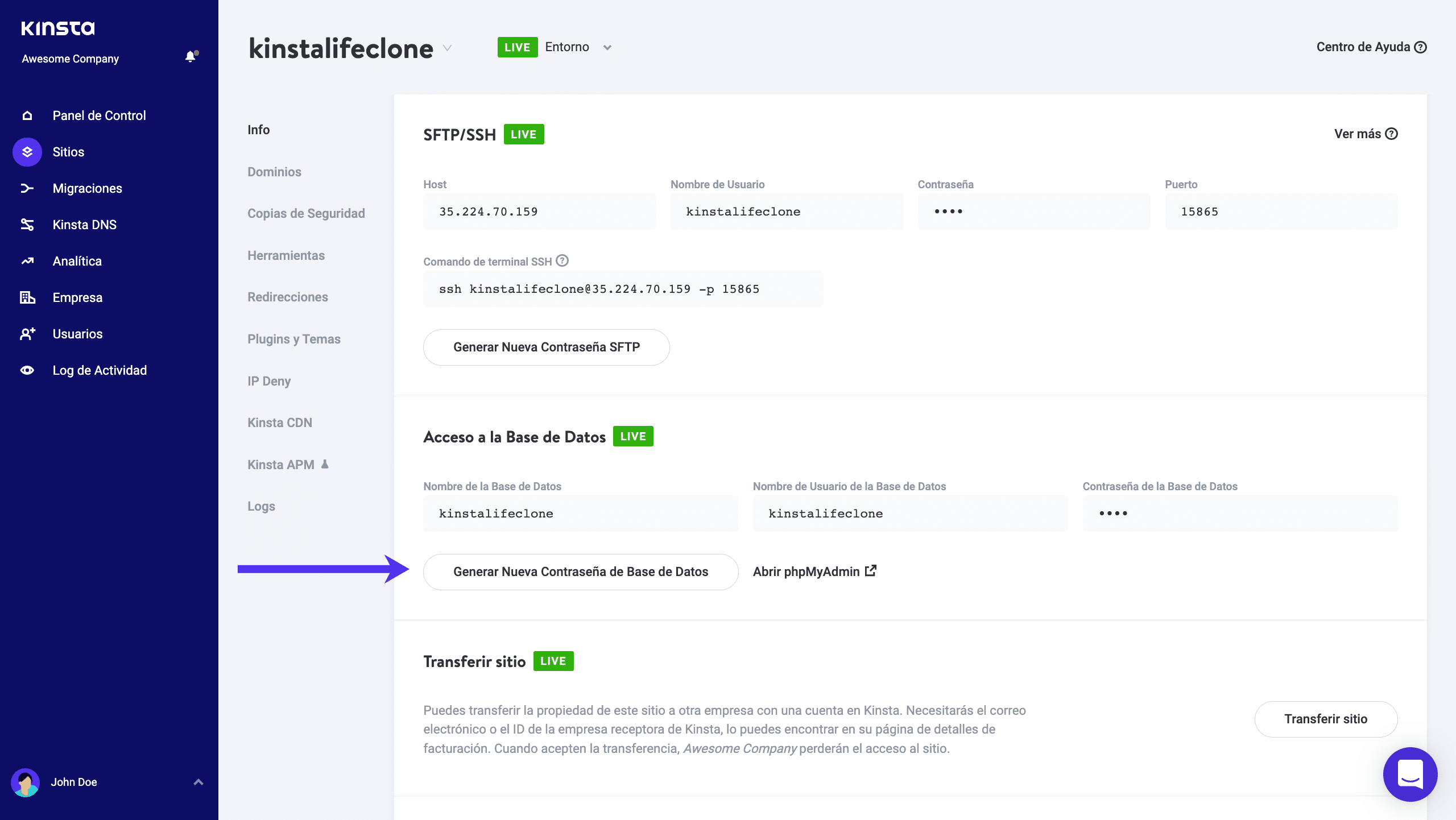 - Desarrollador del Sitio: Acceso al entorno de staging para un sitio. Pueden llevar a cabo acciones en esta, a parte de remover el entorno de staging.