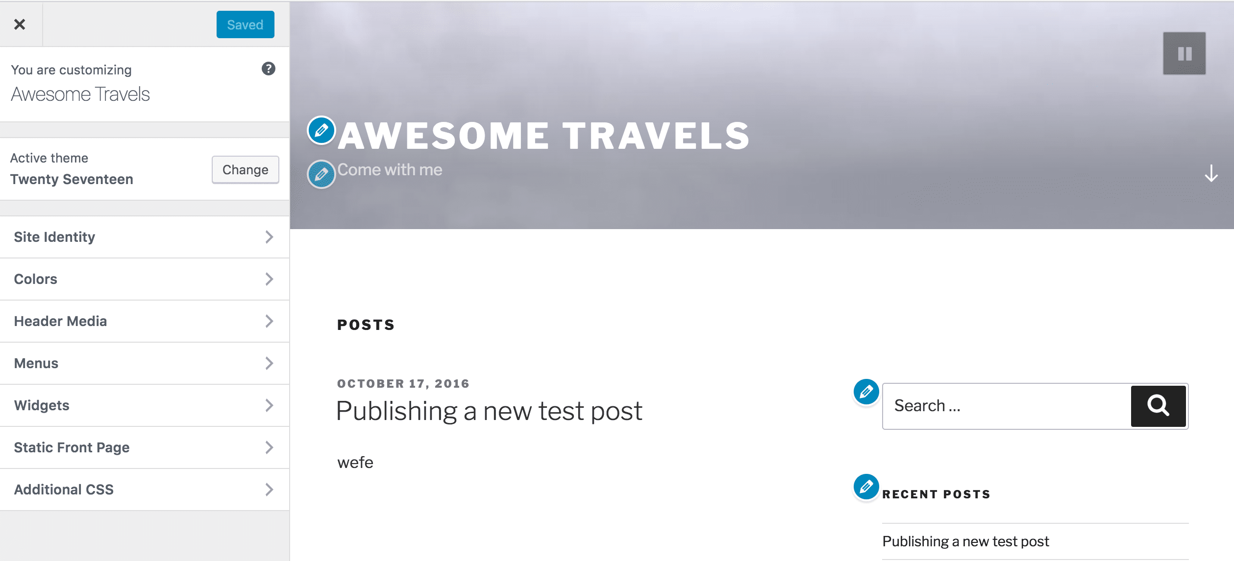 El Theme Customizer fue equipado con iconos de atajo donde haciendo clic le lleva directamente al campo que controla el elemento en duda. Esta es una característica fantástica para temas más complejos donde no se sabe qué es lo que puede ser editado.