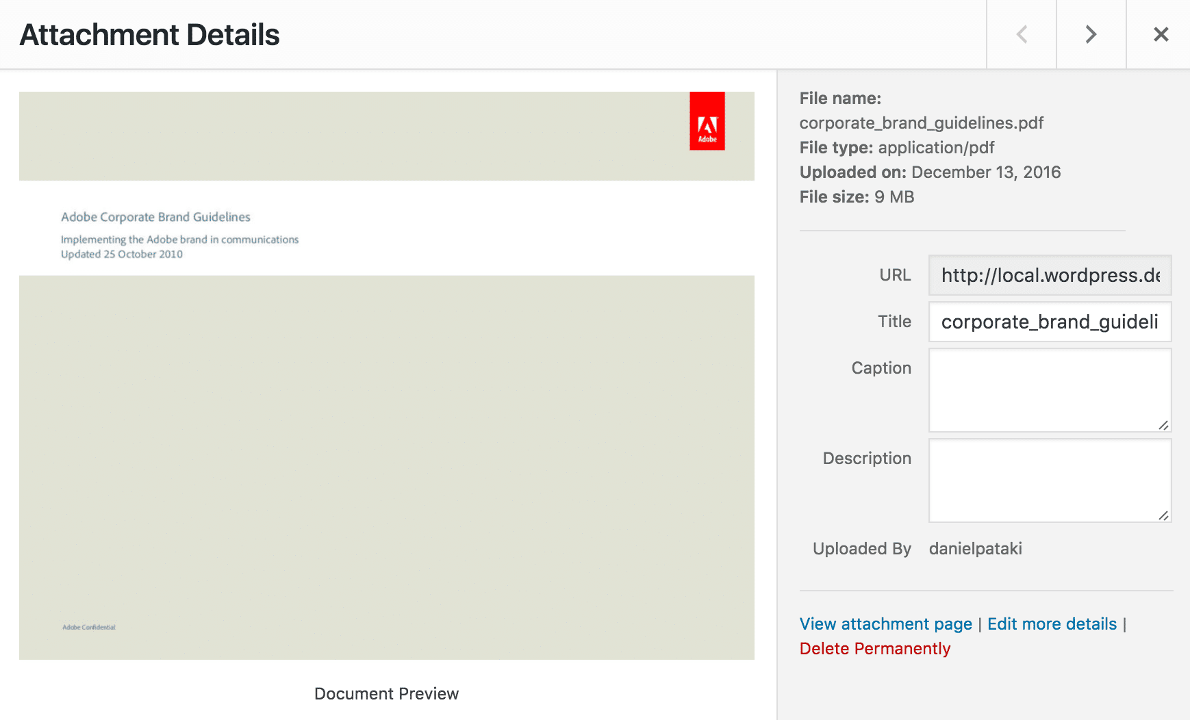 La subida de PDFs generará vista previa en miniatura que hace más fácil la distinción entre los objetos. Aquellos de ustedes que utilizan WordPress para subir documentos ¡se enamorarán de esta característica!