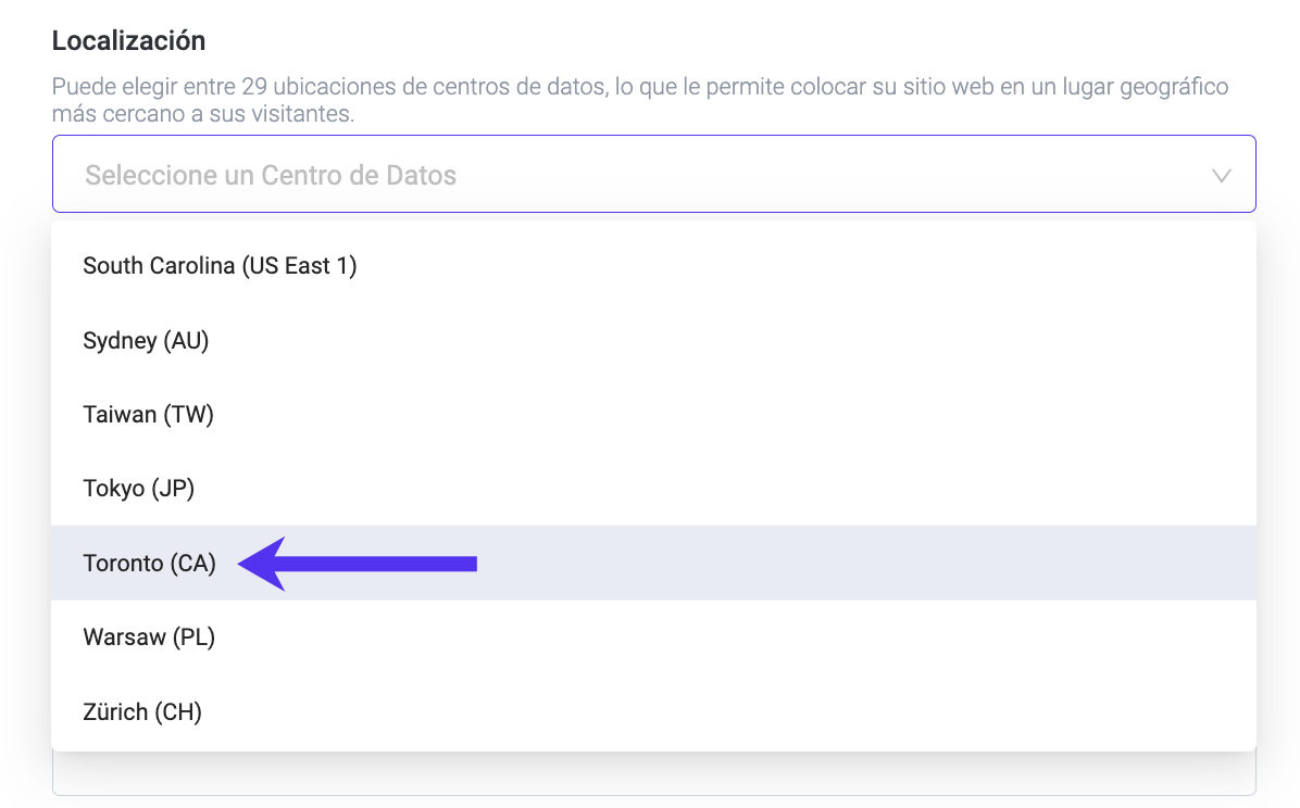 - Una vez allí, seleccione Toronto (CA) como opción de ubicación preferida en el menú desplegable.