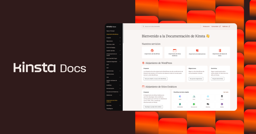 Nuestra nueva página de inicio es un centro neurálgico para todas las áreas de documentación de productos. Tanto si buscas información sobre Alojamiento Administrado de WordPress, Alojamiento de Sitios Estáticos, Alojamiento de Aplicaciones o Alojamiento de Bases de Datos, la encontrarás convenientemente organizada y fácilmente accesible. Además, nuestras guías de inicio rápido te ayudarán a ponerte en marcha en un abrir y cerrar de ojos.