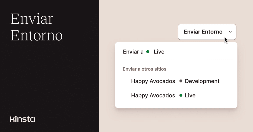 Otra mejora en la funcionalidad de Enviar Entornos del panel de control de MyKinsta ha hecho posible desplegar entornos entre distintos sitios de WordPress.