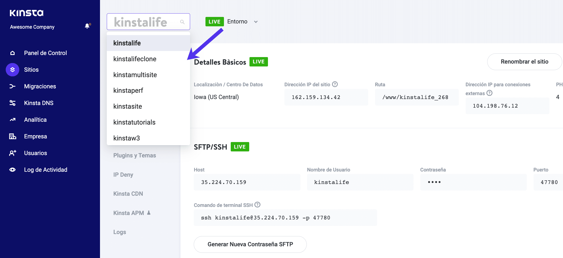 Hemos escuchado de aquellos con varios sitios que el cambio entre sitios era fastidioso. Así ya es posible navegar entre los sitios. Ya no debe volver a la página principal de Sitios, simplemente haga clic en «Sitio» en la parte superior y verá un menu desplegable con todos sus sitios.