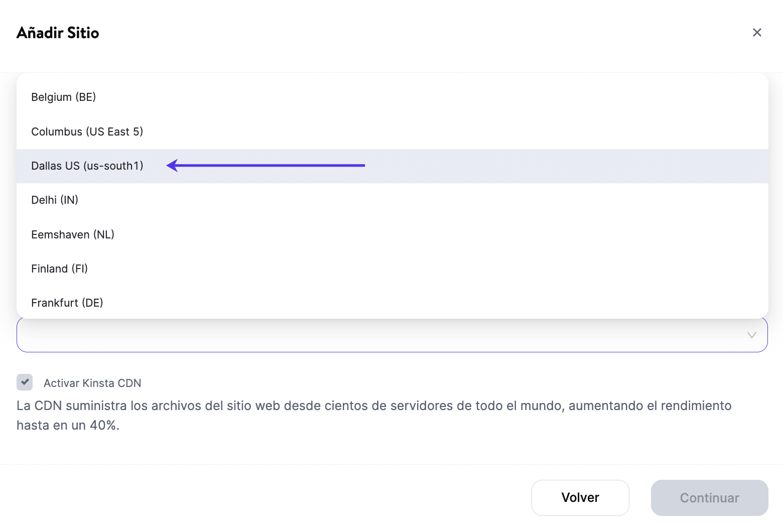 Si quieres establecer Dallas como tu centro de datos, sólo tienes que seguir estos pasos en MyKinsta: