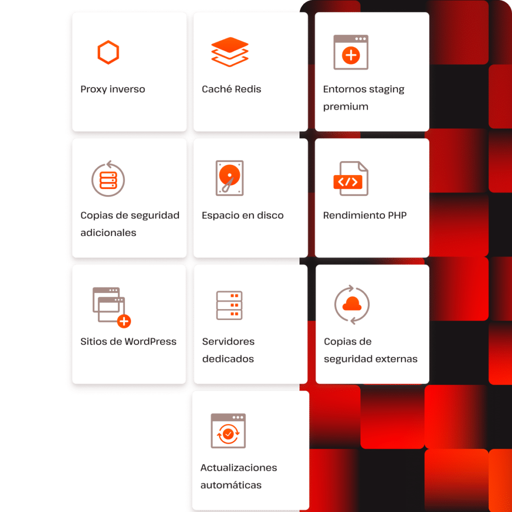 Cada Entorno Staging Premium tiene 12 CPUs, 8 GB de Memoria, y el mismo número de hilos PHP que tienes para tu sitio en producción (basado en tu plan).