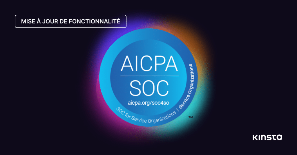 Conçu par l’Association of International Certified Professional Accountants, SOC est un ensemble de rapports sur les contrôles des systèmes et de l’organisation pour un large éventail d’entreprises. La variante SOC 2 convient parfaitement aux fournisseurs de services comme Kinsta dans le domaine du PaaS, car ses protocoles permettent d’évaluer les critères de service en matière de sécurité, de disponibilité, d’intégrité du traitement, de confidentialité et de respect de la vie privée.