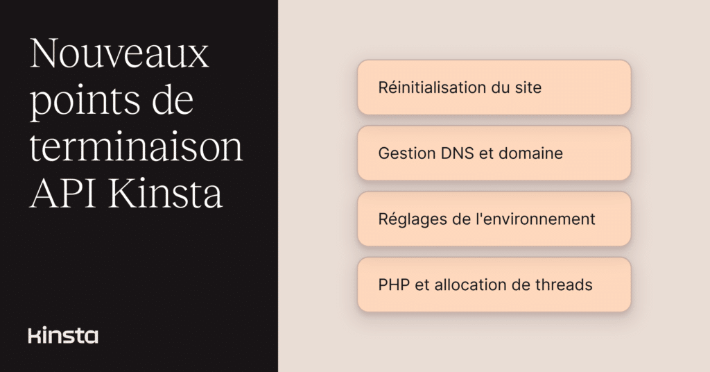 Nous avons déployé un nouvel ensemble de points de terminaison d’API et d’améliorations visant à donner aux développeurs WordPress plus de contrôle sur les opérations du site, la configuration DNS et les paramètres des ressources.
