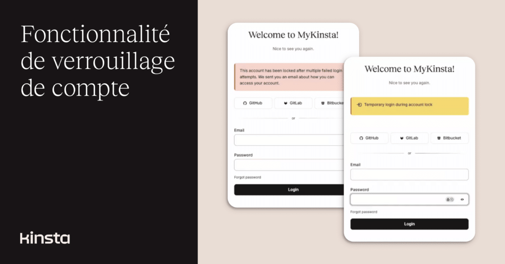 Désormais, si quelqu’un saisi un mot de passe erroné trop souvent, MyKinsta verrouille temporairement le compte et notifie l’utilisateur par e-mail.