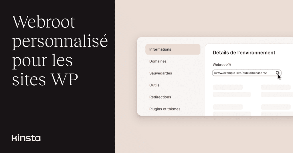 Vous pouvez désormais définir des racines web (webroots) personnalisées pour vos sites WordPress sur Kinsta en utilisant notre API publique. Cela donne aux développeurs et aux agences une plus grande flexibilité dans la gestion des déploiements, du contrôle des versions ou des structures de site personnalisées, sans avoir à contacter le support.