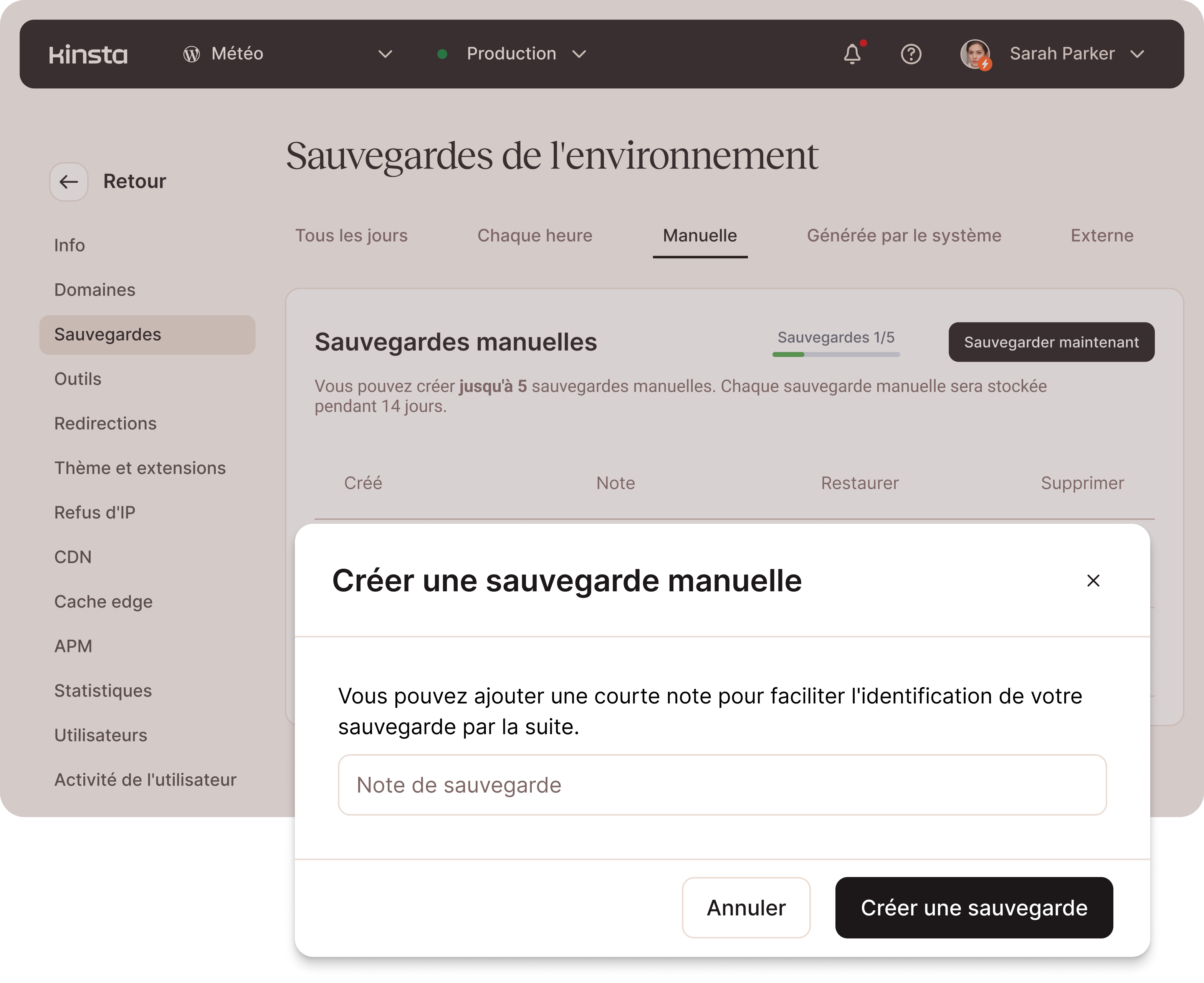 - Création et restauration de sauvegardes en un seul clic