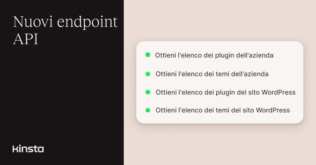 Con queste aggiunte, l’API di Kinsta offre ora una visibilità più chiara sui plugin e sui temi sia a livello di azienda che di sito.