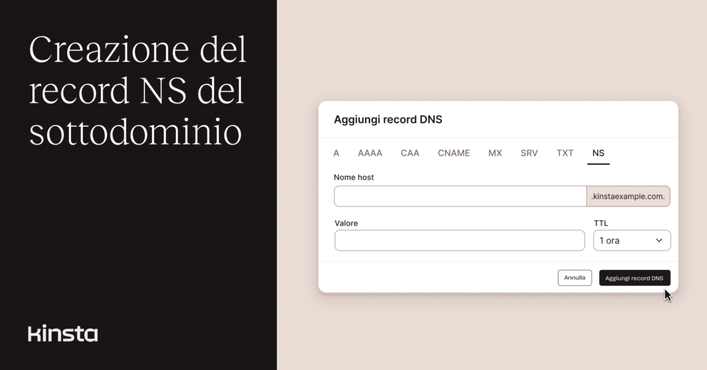 In Kinsta DNS abbiamo aggiunto la possibilità di creare record NS per i sottodomini.