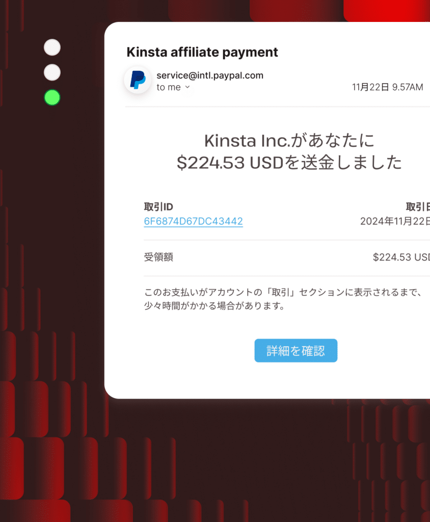 Kinstaのアフィリエイトプログラムは素晴らしいです。登録も簡単で、たった数分でアフィリエイトを始めることができます。これまで大手のクラウドサーバー会社をいくつか利用してきましたが、Kinstaほど丁寧で親切な会社はありませんでした。