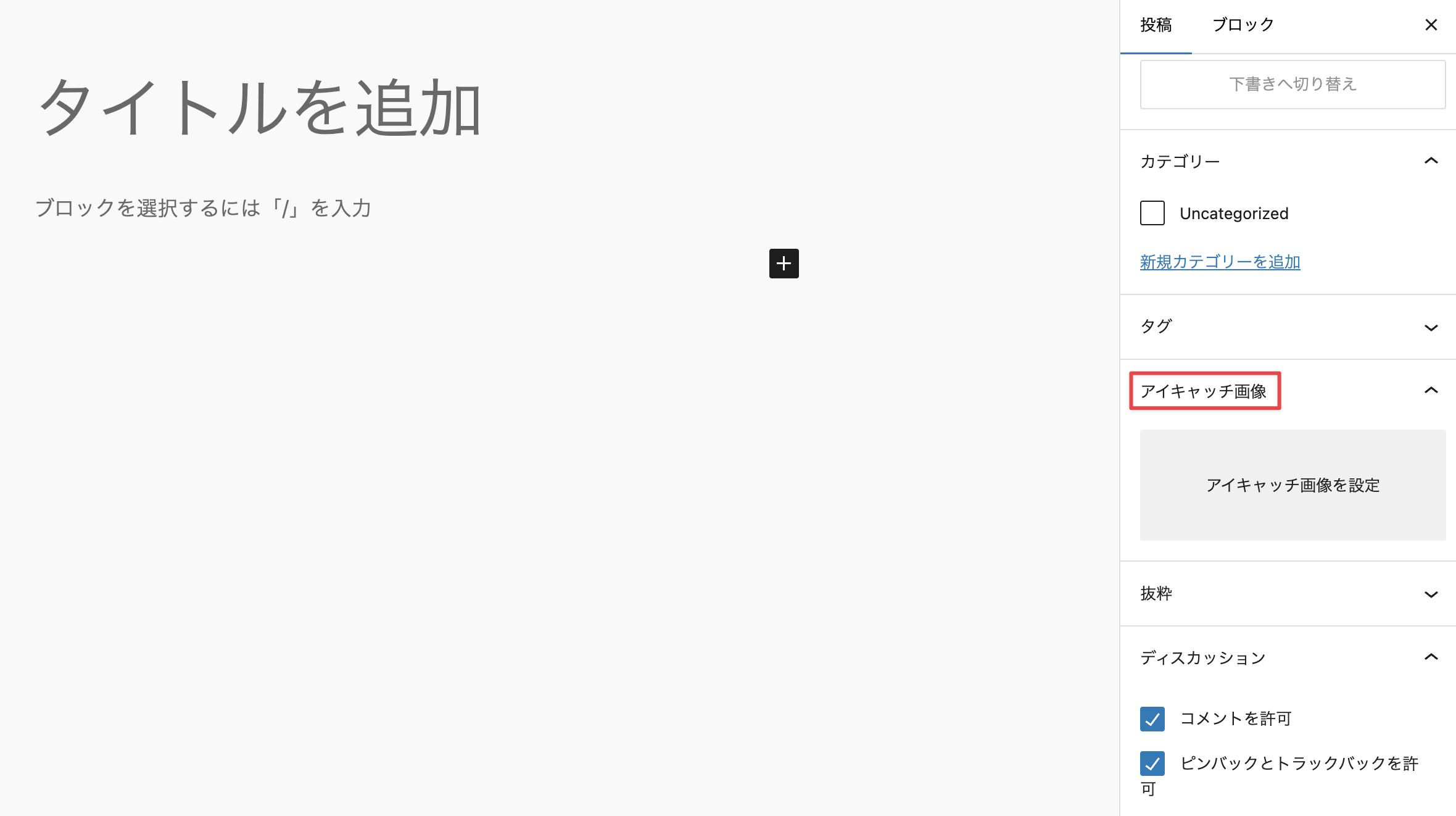 アイキャッチ画像は、コンテンツとは別に右側の設定パネルに表示されます。