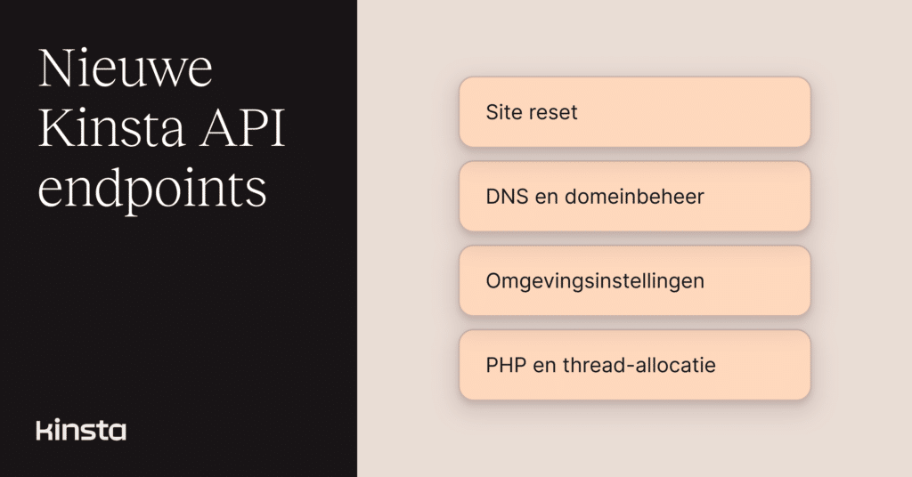 Of je nu threads en geheugen fijn afstemt, domeinen op schaal beheert of WordPress versies over sites synchroniseert, de Kinsta API blijft groeien waarbij we constant de workflow moderne teams als uitgangspunt nemen.