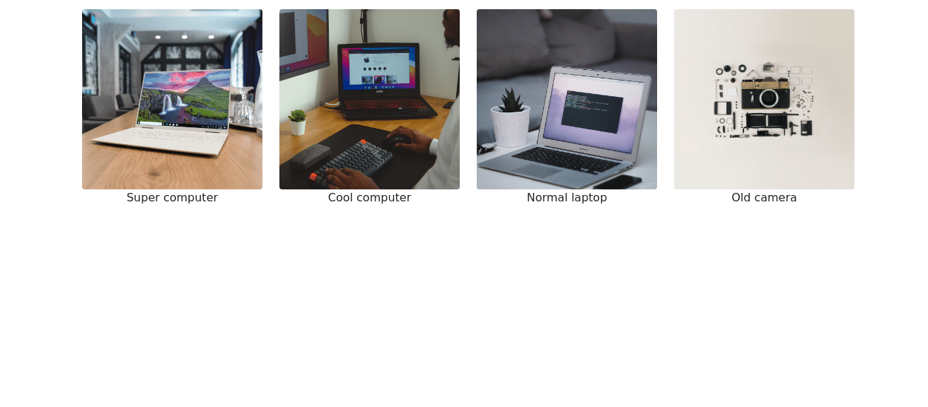 Se você abrir o arquivo index.html em seu navegador, você verá uma página simples com algumas imagens: