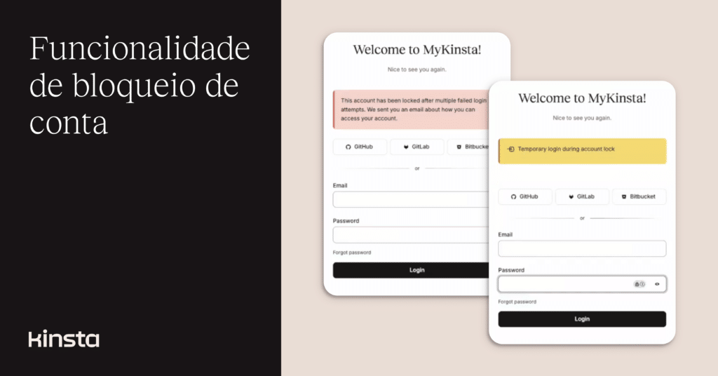 Agora, se alguém digitar a senha errada muitas vezes, o MyKinsta bloqueia temporariamente a conta e notifica o usuário por e-mail.