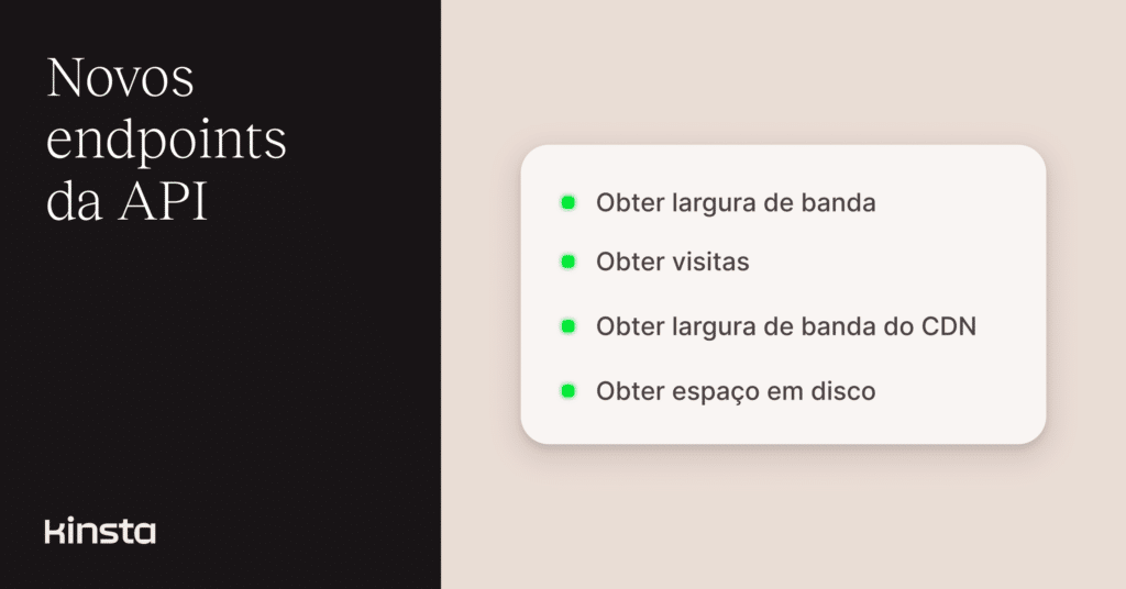 Esses novos endpoints de análises dão aos desenvolvedores mais visibilidade sobre seus ambientes hospedados na Kinsta diretamente de seus fluxos de trabalho de automação e relatórios.