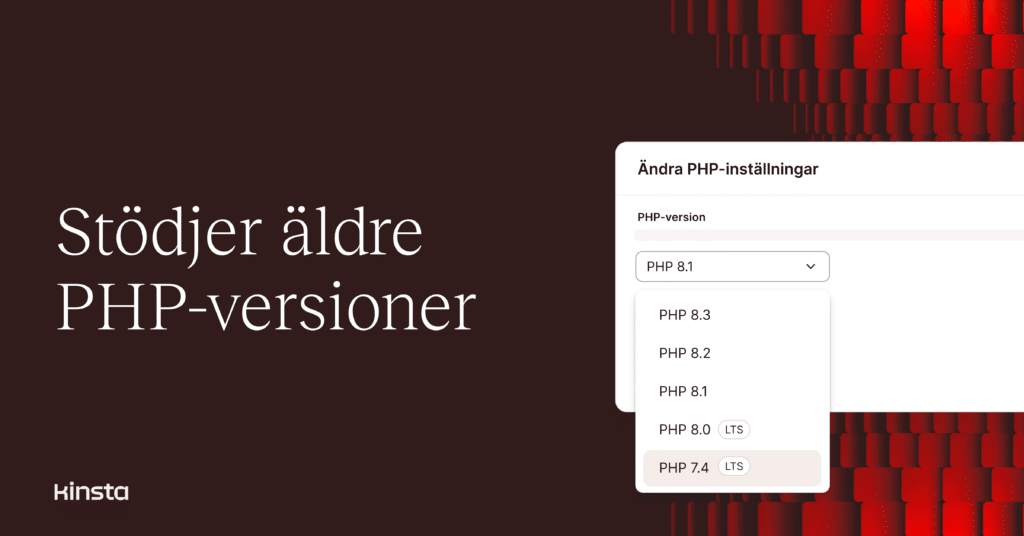 På Kinsta har vi alltid prioriterat prestanda, säkerhet och stabilitet. Det är därför vi hittills har begränsat PHP-support till officiellt stödda versioner som PHP 8.1, 8.2 och 8.3. Som ett resultat har våra kunder kunnat dra nytta av de senaste framstegen samtidigt som de minimerade riskerna med föråldrade versioner.