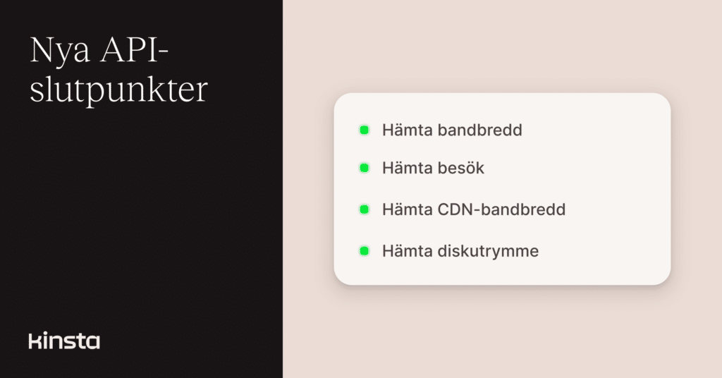 Dessa nya analytiska slutpunkter ger utvecklare mer synlighet i sina Kinsta-hostade miljöer direkt från deras automatiserings- och rapporteringsarbetsflöden.