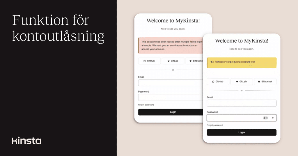 Som en del av vårt pågående arbete för att förbättra plattformssäkerheten och skydda kundkonton har vi infört ett nytt kontolåsningssystem i MyKinsta-panelen. Detta följer vår senaste åtgärd för att kräva tvåfaktorsautentisering (2FA) för alla inloggningar.
