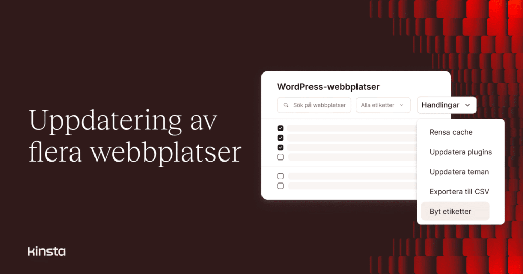 Kinsta har introducerat en ny funktion för massåtgärder i MyKinsta. Som ett resultat blir det lättare för kunder av Hanterad WordPress-hosting att utföra vanliga uppgifter i flera webbplatsmiljöer samtidigt.
