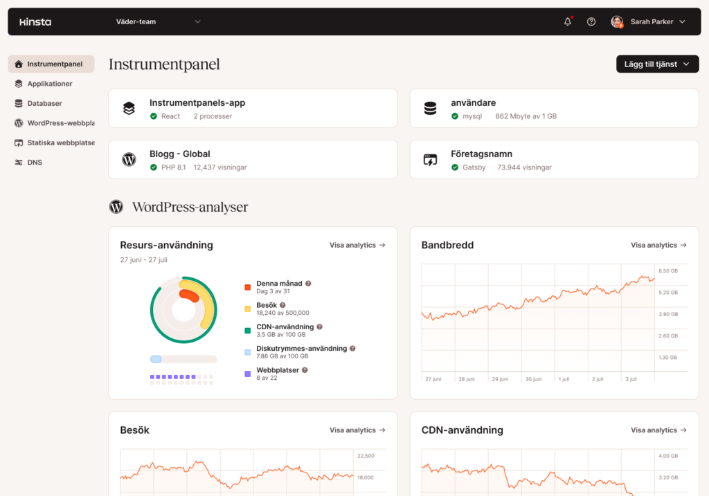 Hosta alla dina webbprojekt i den intuitiva instrumentpanelen MyKinsta. Funktioner på enterprise-nivå är kostnadsfria i varje plan.